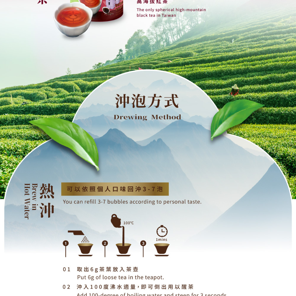 紅茶海拔高度在1,500公尺,有高山紅茶的溫潤,也有東部舞鶴蜜香紅茶的韻味,茶性溫潤、喉韻悠遠,是它最好的註解。喜歡紅玉的茶友們絕對不能沒有它。