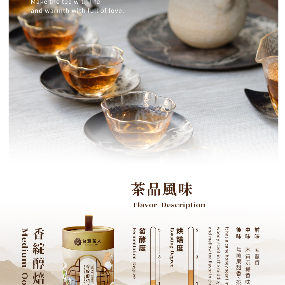 精準焙火搭配顏選茶葉帶有麥芽香甜與恬淡焙米香,口感溫潤滑順。彷彿春日清晨第一道曙光,折射在嫩芽上的露珠,晶瑩透亮,香韻綿延。