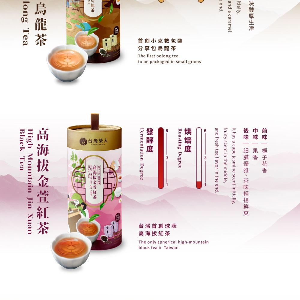 金萱獨有的細緻茶韻,也帶有全發酵、轉化之後的花甜香,它代表的是都會細膩知性的韻味,優雅出眾是它最好的註解。
