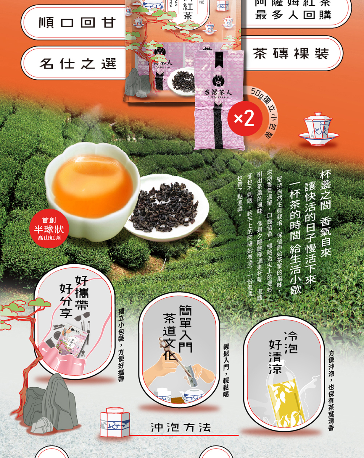 茶湯澄清亮琥珀色,香氣濃郁四溢,不苦不澀、柔中帶勁,有高山茶的清香,有阿薩姆紅茶特有迷人尾韻,喝茶老饕不可或缺的口袋清單。