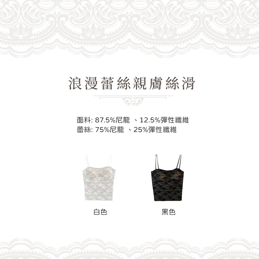 蕾絲:75%尼龍+25%彈性纖維